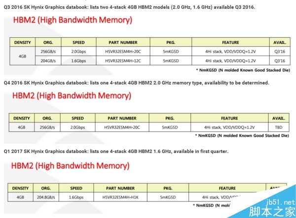 hbm2显存早就出现在了sk海力士的产品清单中,但一直变来变去,越来越糟糕。