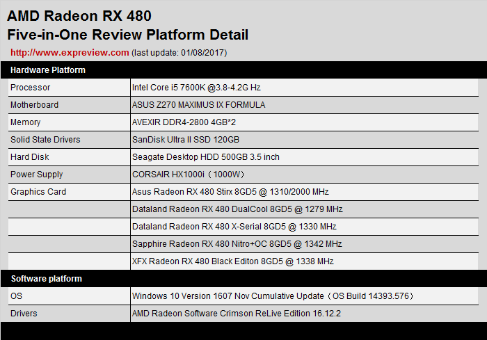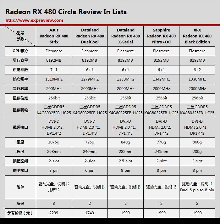 参选的五张radeon rx 480显卡一览