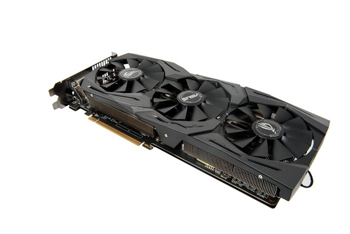 相较于其他选手要么棱角分明、要么圆润流畅的外形,华硕的猛禽系列倒是夹杂着这两种风格,三颗风扇周围的导风罩仿佛是拼接起来的板甲,这样的设计还是很不错的,放在机箱里也很稳重,我们为他打出8.5分。