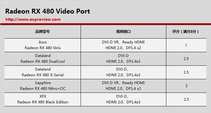 迪兰“x”显卡的视频接口方案和自家的酷能完全一致,没有vr ready接口,因此得分和酷能一致得到2.5分,具体我们不再赘述。