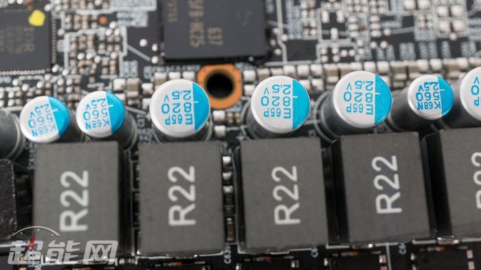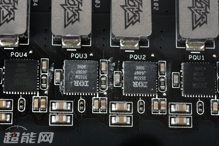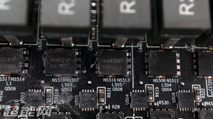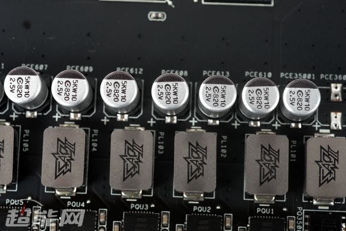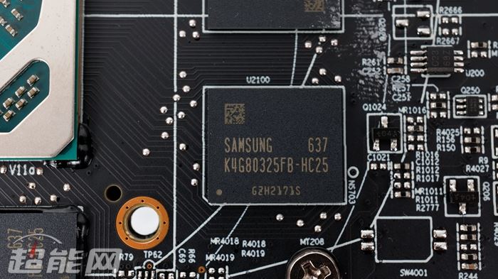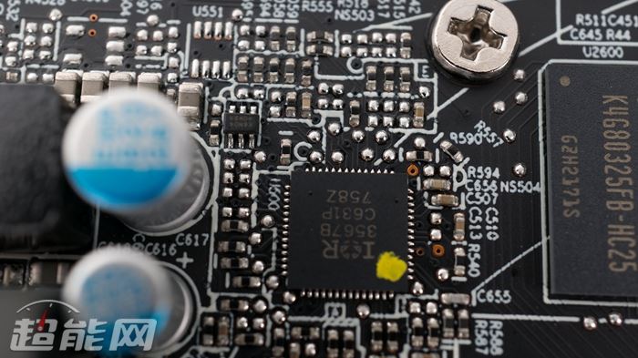 再来看看迪兰,虽然酷能的价格和“x”有200元以上的价差,但是它们的pcb是一脉相承的,采用的都是6+1相封闭式电感,万裕ulr电容,ir 3567b主控、4983nf系列mosfet,显存芯片也都是来自三星的k4g80325fb-hc25,其实geforce gtx 1060 6gb使用的显存芯片也是这种。