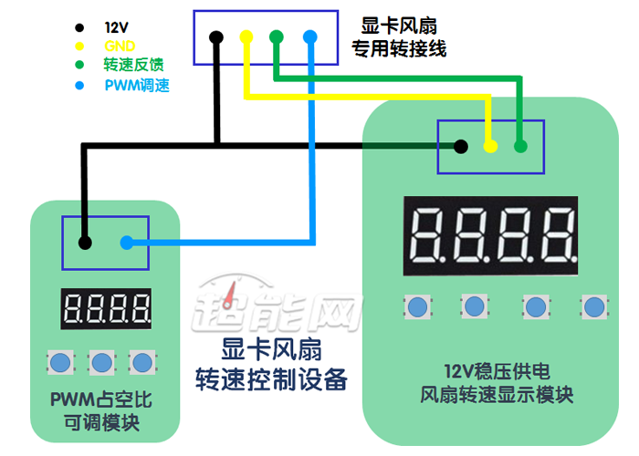 测试噪音的原理是这样的,首先通过此前的散热测试得到五张显卡的待机和满载时的风扇转速情况,之后拆下显卡上的ph2.0标准接口,将显卡风扇连接至特别定制的转接线中,接入订制pwm调速模块,从而实现将静音室中的显卡的转速完全符合实际使用中的转速,使用带记忆功能的分贝仪记录2分钟的风扇运转噪音,选取其中的最小值作为样本,此时环境噪音为38.3分贝。