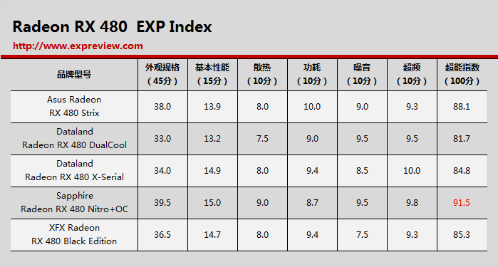 经过一系列的评选、拆解和测试之后,我们终于能一窥到底谁才是市面上最亮的一颗radeon rx 480,蓝宝石超白金凭借91.5分的分数荣获第一,它在基准性能、散热噪音控制方面的表现很出色。第二名属于华硕的猛禽,它的分数也不错,获得88.1分,它在功耗控制方面的表现非常好。第三名是讯景的黑狼进化,他的分数为85.3分,他的功耗控制也不错。第四名是迪兰的“x”系列,它的基准性能也很高,超频的空间更是一马平川,最后分数为84.8分。最后以主打性价比的迪兰酷能垫底,分数为81.7分。