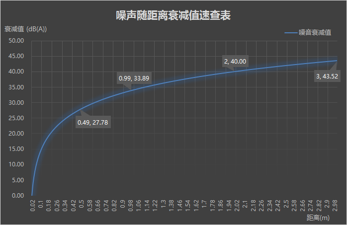 不过由我们的显卡噪音在距离风扇2cm处测得,但我们正常使用到时候不可能距离这么近,而声音会随着空间距离而衰减,在此给出噪声随距离衰减值速查表,大家可以对照扣除衰减值就可以得到远端距离噪声值。举个例子,我们测得华硕gtx 1080 o8g在满载下噪音值为59.2db(a),换算到1米以外噪音值=59.2-33.98=25.22db(a),不过这个也是理论值,仅供参考。但现实中你还要考虑机箱内部反射补偿以及物体遮挡衰减。