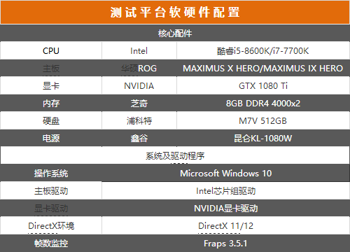测试平台方面,由于八代酷睿系列处理器不兼容上一代主板,因此从测试平台配置来看,只有cpu和主板不同,而显卡、内存、硬盘等核心硬件都是一样的,在相同显卡、内存等环境下进行cpu运算与游戏能力对比,就能有效体验两款cpu的差距了。