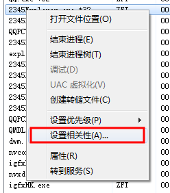 4、找到你要设置的应用程序的进程,右击,选择设置相关性选项