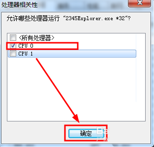 6、取消cpu1 的勾选,然后点击确定按钮