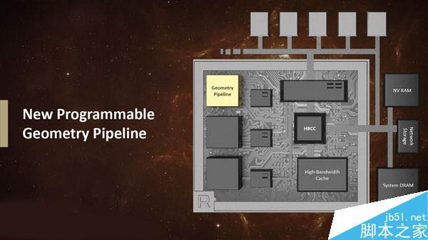 第二点,vega拥有新的可编程几何流水线,每时钟周期峰值吞吐量翻了一番,可通过4个几何引擎处理最多11个三角形。
