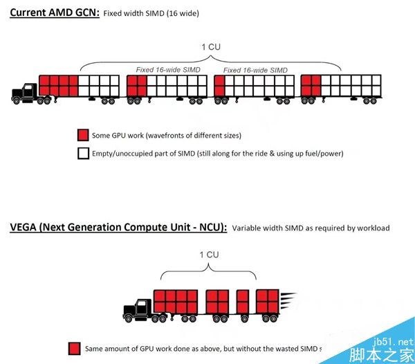 ncu还可以同时进行计算和图形处理,并且能够根据负载不同而变换simd单元宽度,结果就是以往需要多个计算单元才能完成的任务,现在只需一个就能搞定,不会造成浪费。