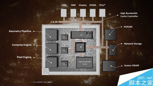 这就是vega gpu初步披露的架构设计,重点就是革命性的高带宽缓存、新的可编程几何引擎、下一代计算单元、高级像素引擎。