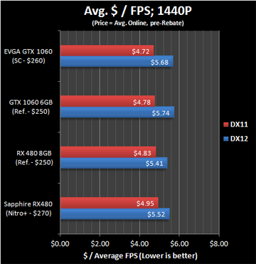 原文测试的数据非常多,有dx11、dx12之分,还有1080p及1440p分辨率之分,篇幅很长,小编这样的懒人党直接看最后的结论吧,反正大家关注的也是最后的结果:
