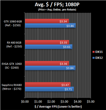 rx 480 8gb与gtx 1060 6gb国内外的报价都差不多是同一水平,人民币价格多在1999-2199元之间,rx 480总体便宜一点(这几天看到过xfx rx 480 8gb做到1699元的价格),不过高价的gtx 1060 6gb显卡频率也提升了不少。如果硬要在这两个之间选择一款的话,原文的推荐是rx 480 8gb,不仅是因为amd缩小了与gtx 1060显卡的性能差距,它在dx12下也有优势。