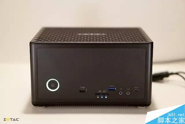 接下来我们详细看看en1080的外观。前面板设有一个rgb背光的开关、一个前置hdmi输出口、一个sdxc读卡器、一个usb3.1 type a接口、一个usb3.1 type c 接口,以及3.5mm 的耳机和麦克风接口。