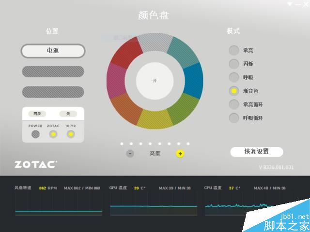 玩家可以根据自己的需求设置个性化的主机灯光效果。同时spectra utility这个软件还可以显示实时的显卡、处理器温度以及风扇转速。