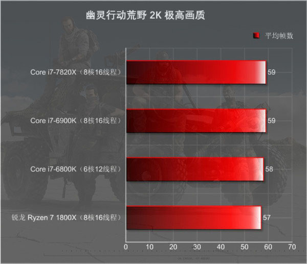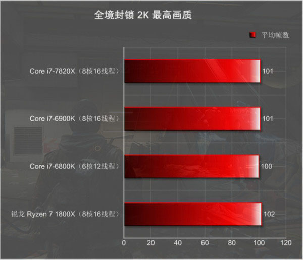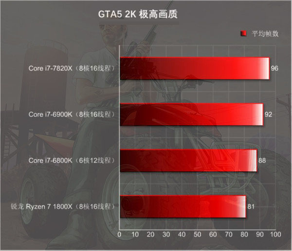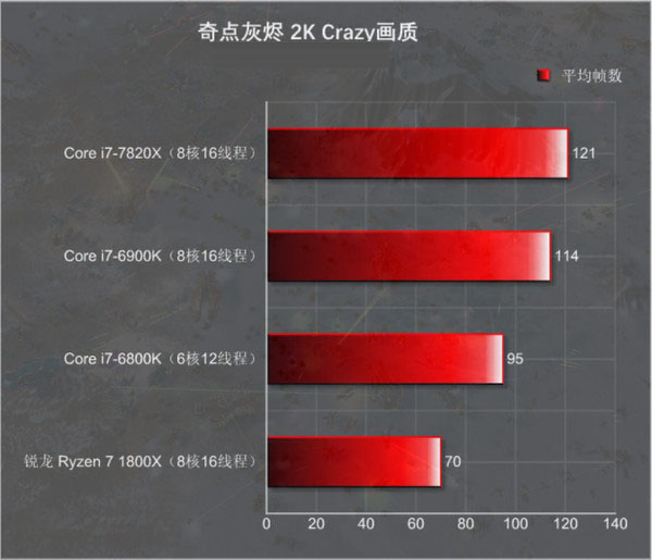 测试小结:游戏测试中统一所有游戏都是在2k的分辨率运行,6款游戏里其中4款的游戏,所测试的帧数都是非常接近,能反映到差距的只有gta5和奇点灰烬,gta5上7820x领先锐龙r7 1800x有15帧。奇点灰烬的差距就比较夸张,cpu帧率成绩只有70,明显游戏优化还不到位。不过,7820x对比6900k也有7帧的优势。