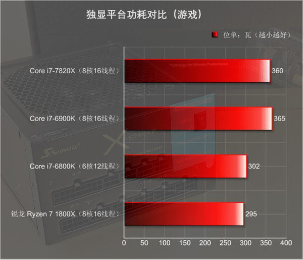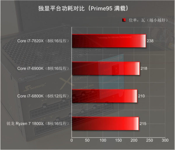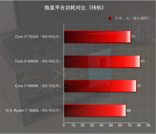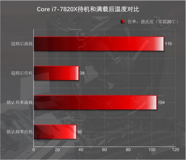 对比tdp只有95w的锐龙r7 1800x,7820x无论待机还是满载都有比对手高一点。