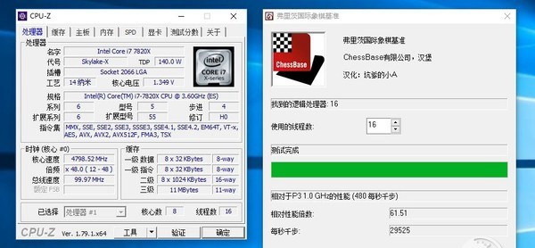 超频小结:i7-7820x默认频率是3.6ghz,风冷条件下可以8个核心全部超频至4.8ghz,超频幅度达到33%!这是什么概念?和对手相比,同样8核的锐龙r7 1800风冷超频也是大概在4.1ghz左右就已经极限了,和自己相比,上一代i7-6900k风冷普遍是4.3ghz水平,由此可见这一代的skylake-x的超频潜力比较大,相信开盖后再加水冷散热的情况下i7-7820x的超频能力还会进一步解放。