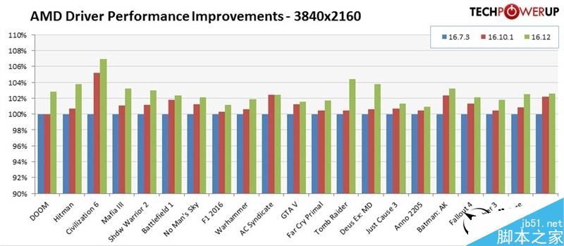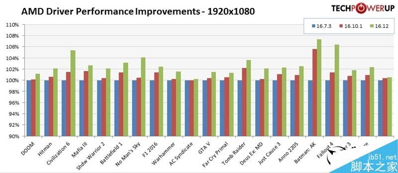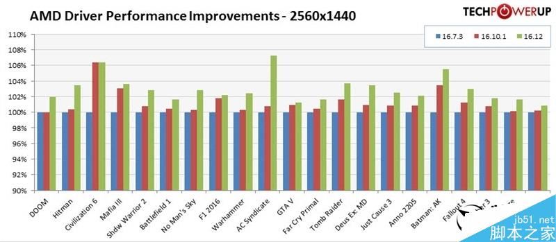 1440p下,最高幅度是《奇点灰烬》的7%左右(相对16.10.1),最低的如《gta 5》也有0.3%左右(tpu这个表很心机啊……)。