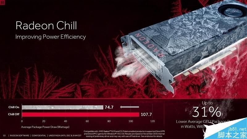 radeon chill,来自于amd收购的hialgo三大技术之一,一款高效帧率控制器,可根据鼠标移动速度动态调节显卡帧率,旨在降低系统功耗,同时让最终用户持续获得最佳游戏体验,实现平滑游戏而不会对性能产生显着影响,为用户带来更凉爽更安静系统。
