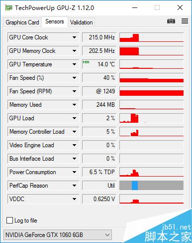 铭瑄gtx 1060 jetstream 6gb本身的散热设计就很完善,加上天气比较寒冷,温度相当冷酷,测试拷机时也只有50℃上下。