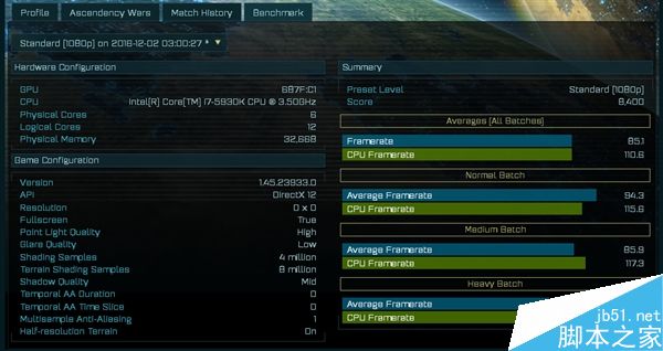 所测游戏时大家耳熟能详的《奇点灰烬(aots)》,这是首款dx12游戏,虽然在玩家市场声音不大,但因为dx12 api的缘故,跑分是个不错的选择(尤其a卡)。