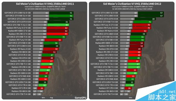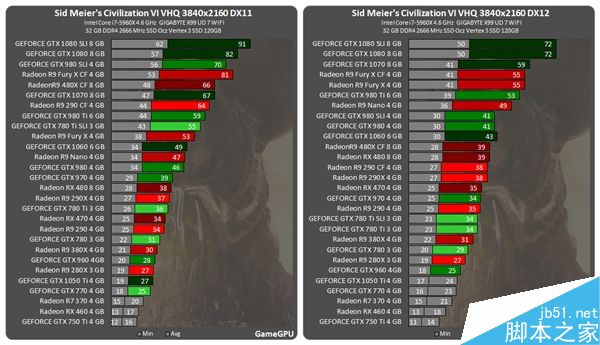 DX12最新大作《文明6》测试:DX12/DX11各分辨率区别对比现在GameGPU已经更新了显卡测试成绩,下面我们来对比下DX12/DX11各分辨率下的区别,对于《文明6》来说,其实30FPS就够,所以1080P下 GTX 950/RX 460都可以爽玩... 16-11-20