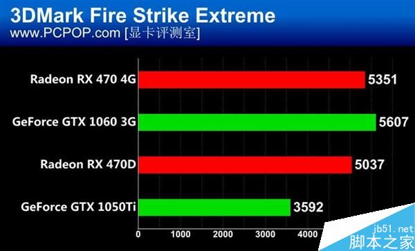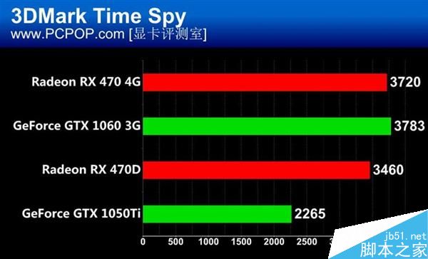 3dmark dx11基准性能测试中我们可以看到,gtx 1060 3g以5607的成绩居于第一,rx 470 5351的成绩也十分不错。rx 470d的成绩为5037,超过gtx 1050ti大约40.2%。
