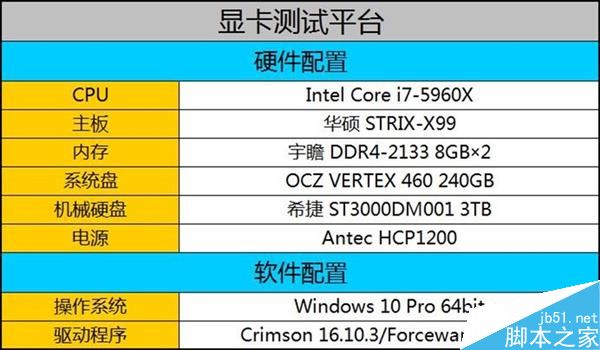 为了避免其它因素对测试结果造成影响,我们搭建了一套i7-5960x x99组成的硬件平台,内存使用频率高达2133mhz的ddr4 8gbx2内存套装,驱动程序版本为crimson 16.10.3和forceware 375.50。参测的显卡就是上述的迪兰rx 470 4g x-serial、七彩虹 igame 1060烈焰战神u-3gd5、蓝宝石rx470d 4gd5超白金oc以及微星 gtx 1050ti 4g oc。