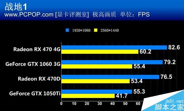 《战地1》一项中,定价1299元的rx 470d的成绩几乎与1599元的3gb gtx 1060持平!rx 470的2k性能相比3gb gtx 1060优势明显,高达8.7%。gtx 1050ti则以50%的性能差距被rx 470d远远甩在身后。