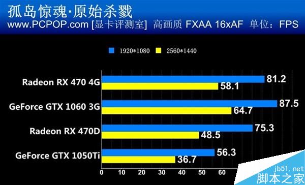 从《孤岛惊魂:原始杀戮》这款dx 11游戏中我们能够看出,他对于nvidia显卡的优化十分明显,此项测试gtx 1060与rx 470的比较是前者胜出。但是在rx 470d与gtx 1050ti的对比依然是rx 470d优势明显,1080p的成绩高出了33.7%,2k成绩高出了32.1%。