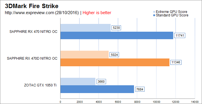 看来amd真是花了血本来攻下gtx 1050 ti这座铁堡。让rx 470自降身位,摇身一变为rx 470d,无论在3dmark firestrike还是time spy,rx 470d以压倒性优势碾压gtx 1050 ti,而且和自家的rx 470超白金oc性能差距在5-8%之间,成绩令人惊喜。