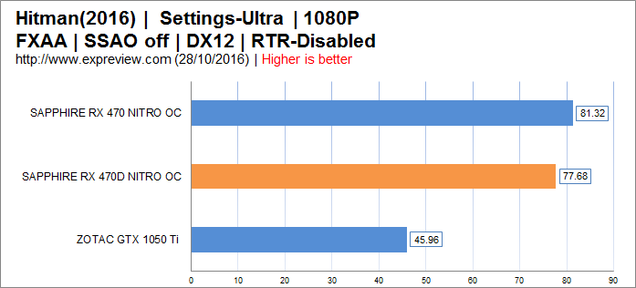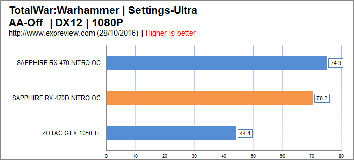 在dx12测试项目中,a卡的rx 470d似乎对dx12的项目更加友好,例如在《战锤》《杀手6》中领先成绩幅度远超在基准性能测试中的幅度,对gtx 1050 ti发动了会心一击。