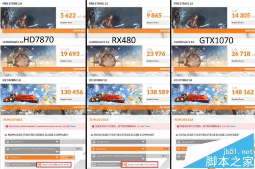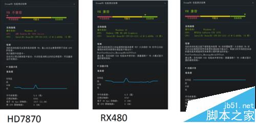 从图中可以看出来,rx480的vr text只有6.7分左右,970显卡用户表示大概7分。勉强能打平把。而1070可以达到11分,确实不是一个档次的。