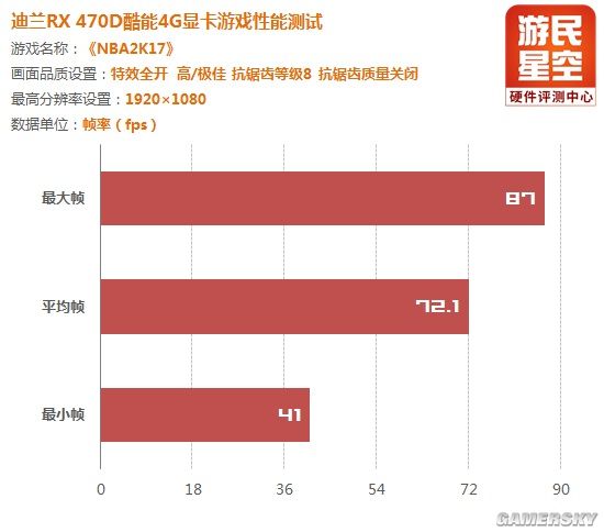 迪兰rx 470d 酷能 4g显卡实战《nba 2k17》结果展示: