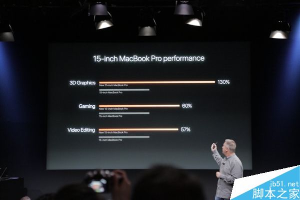 苹果给出的官方性能数据显示,15寸mbp独显顶配的3d显示性能提高了130%,游戏性能提高了60%,视频编辑性能提升了57%;13寸则分别是76%%、103%和76%。