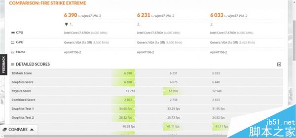 跑分使用的是3dmark firestrike extreme(1440p),这里的rx 580频率超到了1500mhz,得分6390/6880(gpu),比rx 480约提高23%左右。
