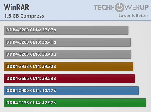 外媒techpowerup就此进行了专门的深入测试,处理器采用旗舰型号ryzen 7 1800x,内存是号称专门优化的芝奇flare x,两条8gb组成双通道(条子真不错高频也能做到cl14)。