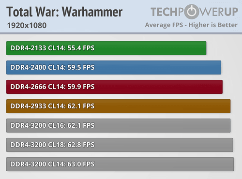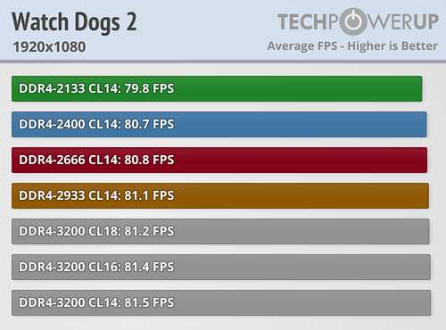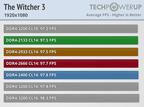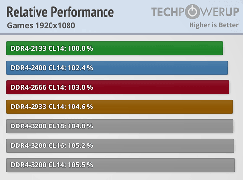 游戏测试中,1080p下差距最大,但也仅仅5.5%,这主要是由于此时cpu是最大瓶颈,更快的内存会起到一定的帮助作用。