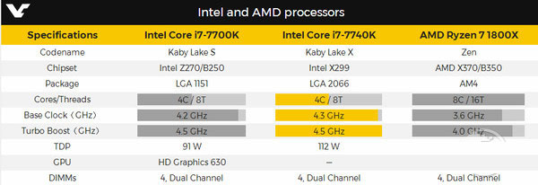 本次被曝光的i7-7740k与i7-7700k同为4核8线程,但削去了核显,只支持双通道ddr4内存、略提频率至4.3~4.5ghz,功耗也增加了一点点,其他规模参数与i7-7700k并无区别。