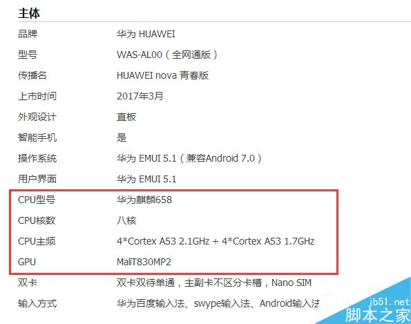 华为此前的nova所用处理器是高通骁龙625,14nm工艺,八核a53 2.0ghz,adreno 506 gpu,lpddr3内存,显然麒麟658的性能不比其弱。