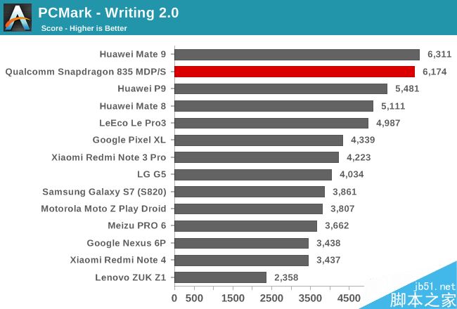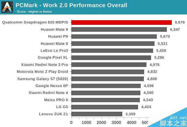 pcmark work、web项目里骁龙835表现不错,但领先麒麟960优势也不太明显,最多不过10%。