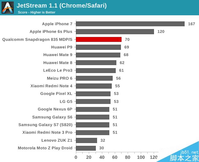 js性能是苹果的强项,骁龙835只是在安卓阵营里领先,不过因为大家的浏览器不一样,其实也不能直接对比。