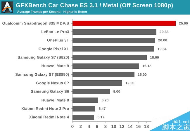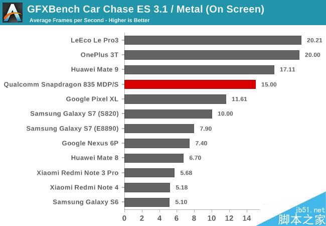 opengl es 3.1的赛车项目更猛,相比于骁龙821提升了足足25%,达到了高通宣称的幅度。