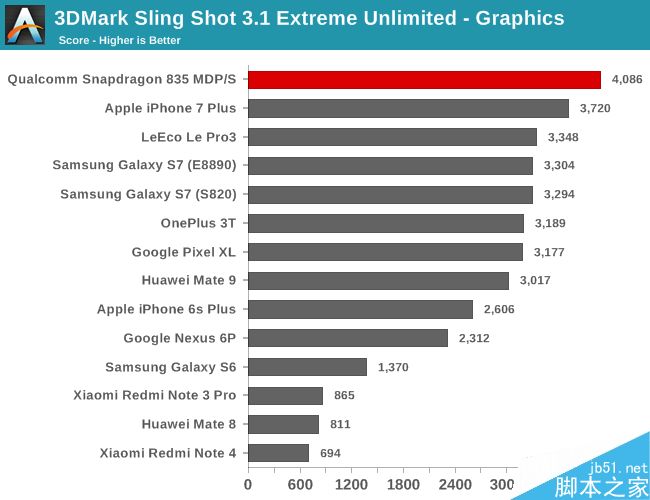 3dmark里边骁龙835更是出类拔萃,领先多达30%!