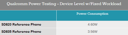 测试显示,骁龙820开发机混合负载的平均功耗为4.6w,骁龙835则是3.56w,降低了足有23%。