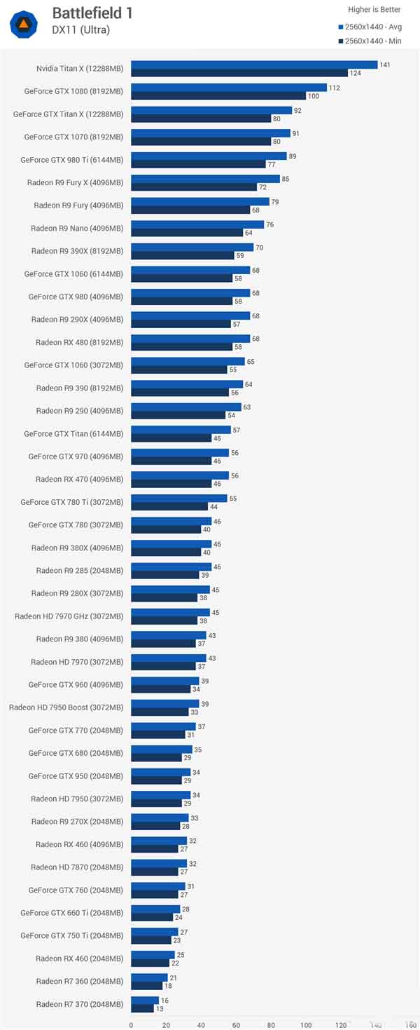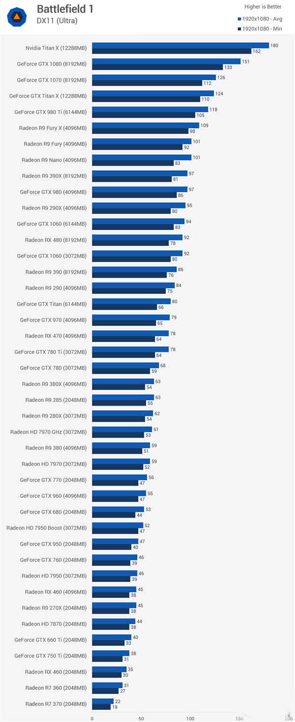 你的配置能玩?41块显卡1080P、1440P测试战地1