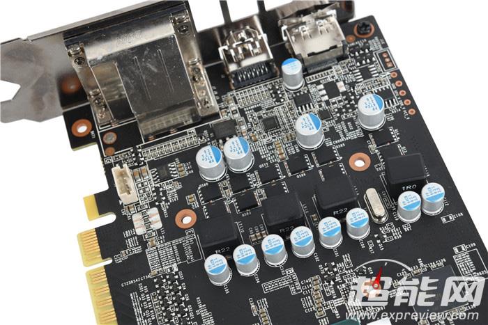 影驰也很“关照”地给gp107核心使用上了单热管直触,配合大面积铝散热鳍片,散热效果肯定很不错。