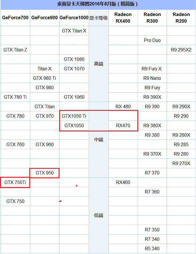 从今年最新的桌面显卡天梯图来看,伴随着今年nvidia新架构显卡的更新换代,gtx1050 ti显卡性能比gtx1050要更出色一个级别,相比gtx950、gtx750 ti,性能则要提升不少,因此更值得今后主流装机用户推荐。