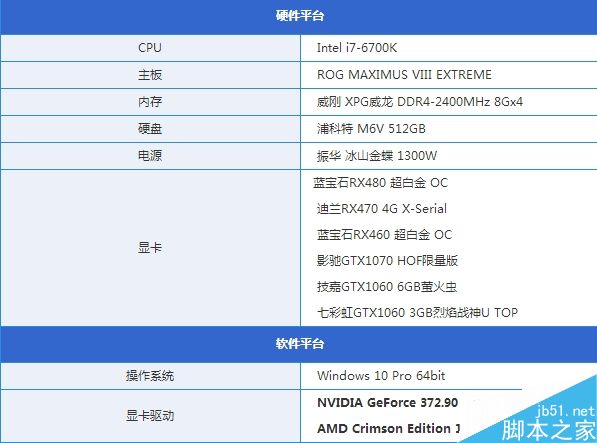 测试平台说明:测试平台方面采用的是消费级平台z170+6700k顶配,本次测试一共选用了6块显卡进行对比测试,具体型号如上,驱动方面为最新的amd crimson edition 16.9.2以及nvidia forceware 372.90 whql。