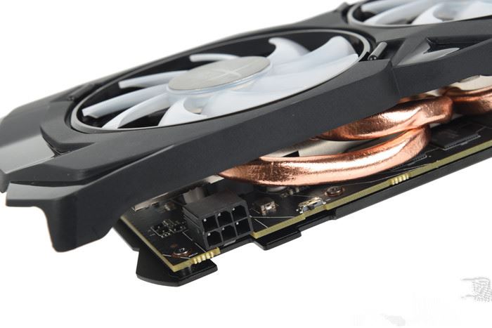 显卡散热器采用三根8mm直径的热管,散热器前端还可以直接接触到供电mosfet